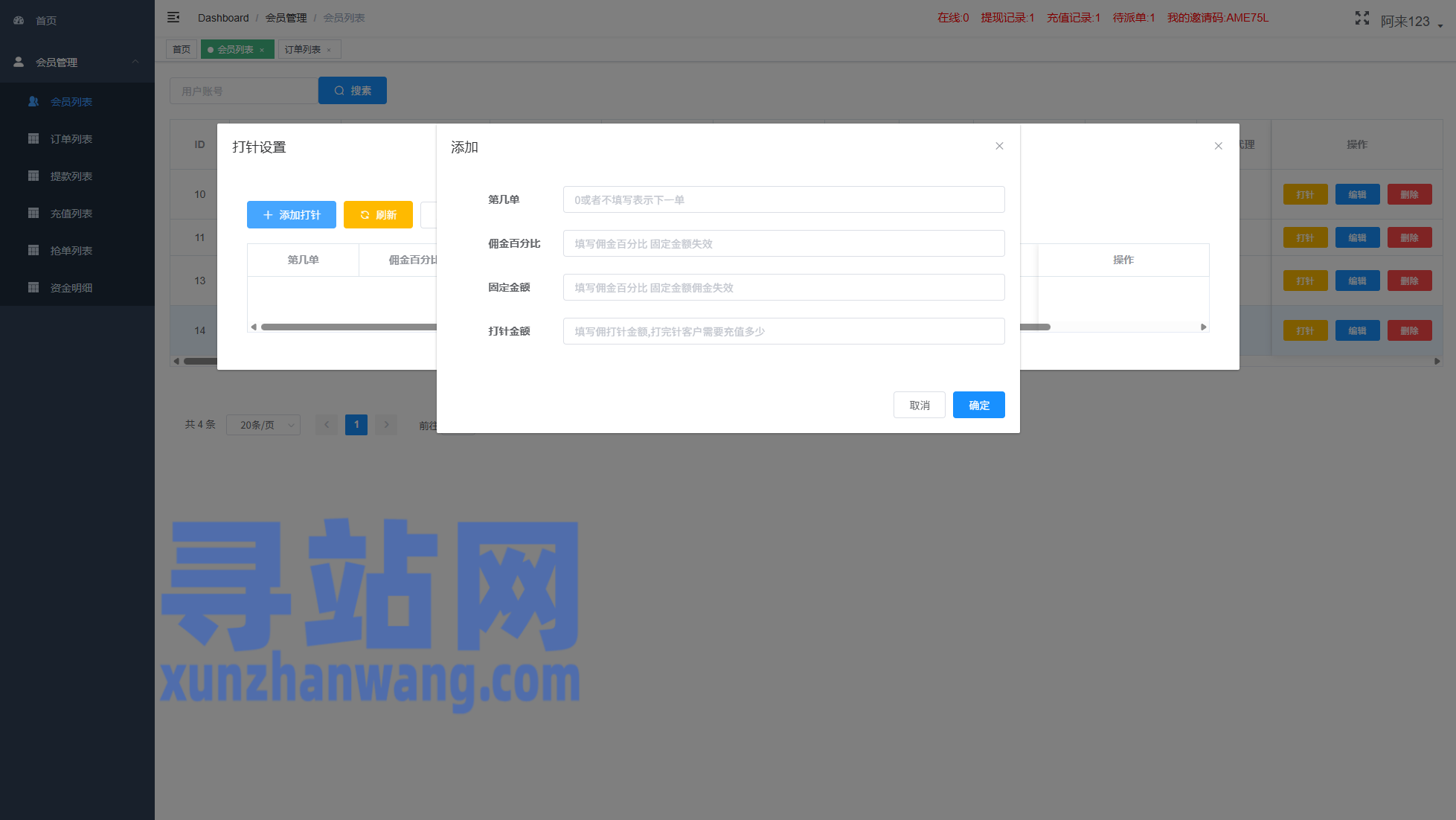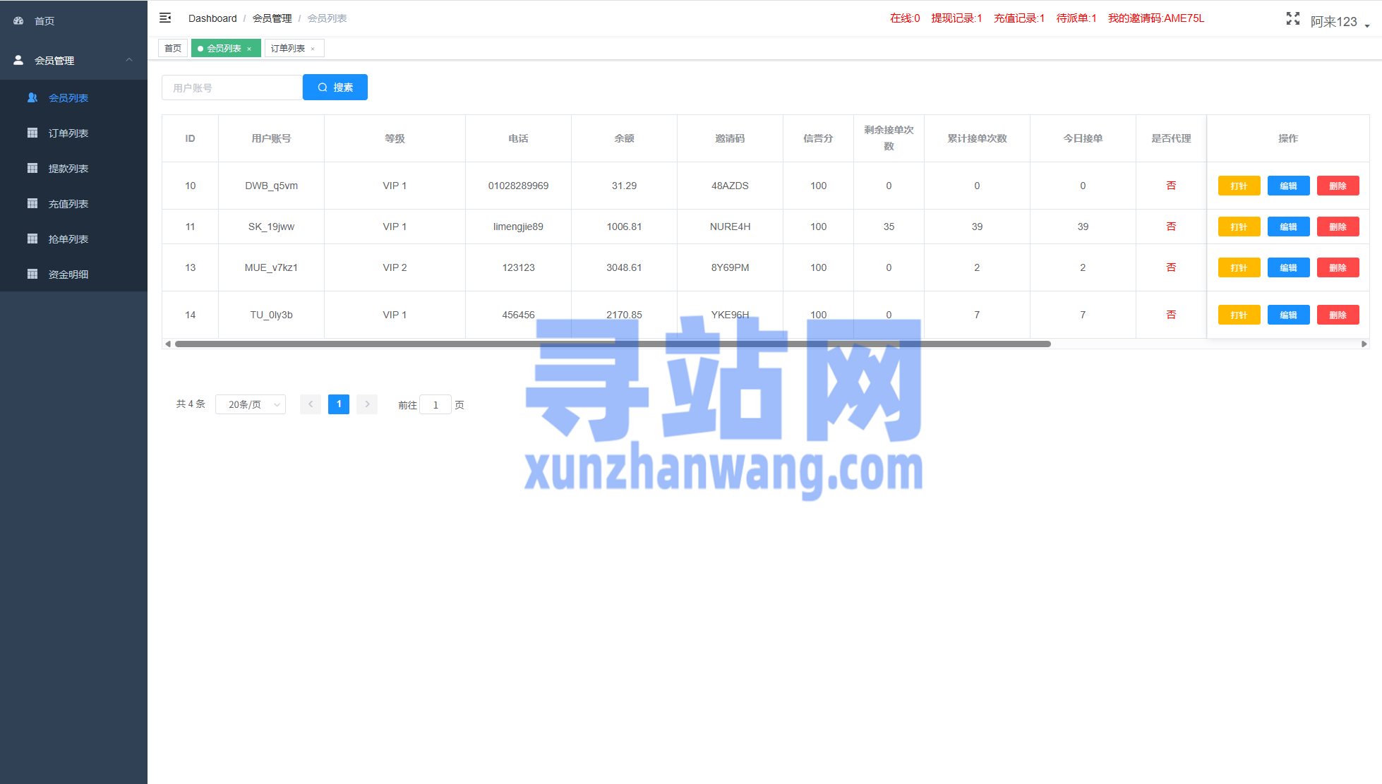 独立代理后台,支持打针信用分等功能