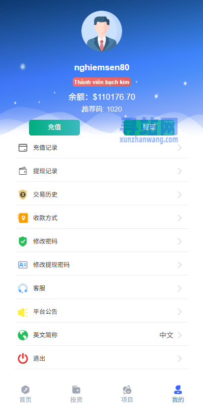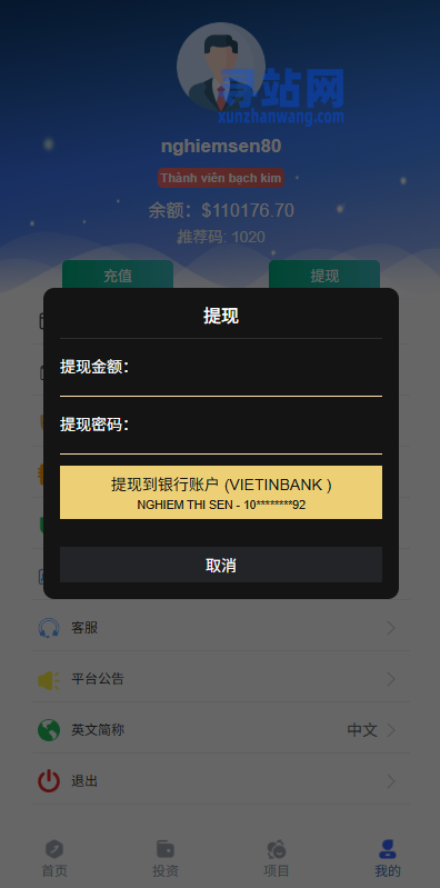 支持投资理财,自带内置客服系统,后台纯越南语