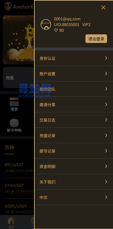 系统功能:币币交易,期权交易,永续合约,申购,贷款,矿机理财