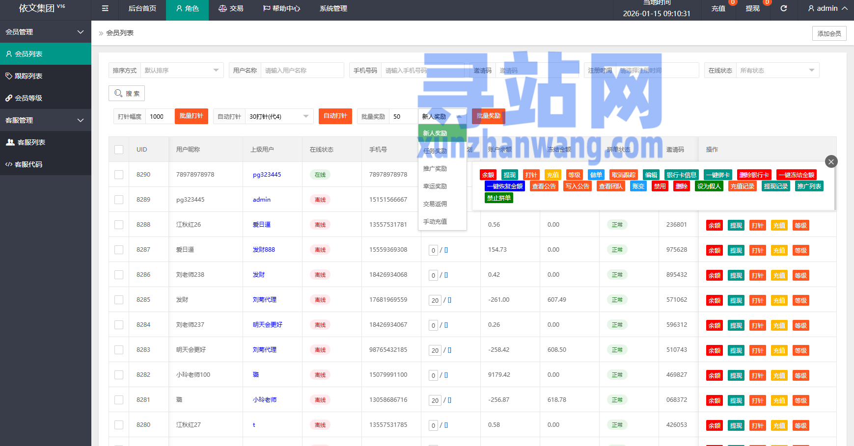 批量打针,批量奖励,信誉分,会员跟踪,一键冻结,一键绑卡等功能